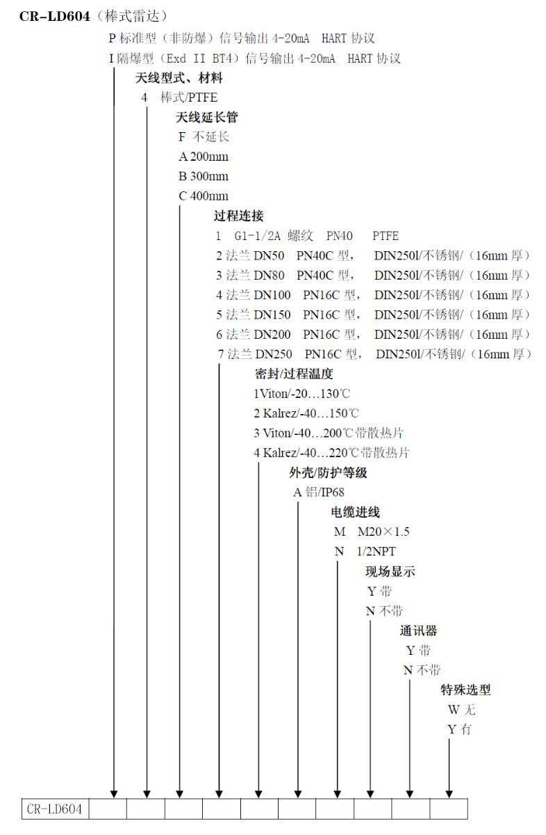 6.3G雷達(dá)CR-LD604適用于存儲(chǔ)或過(guò)程容器腐蝕性的液體、漿料、固體比如:水液儲(chǔ)罐,酸堿儲(chǔ)罐,漿料儲(chǔ)罐,固體顆粒,小型儲(chǔ)油罐
