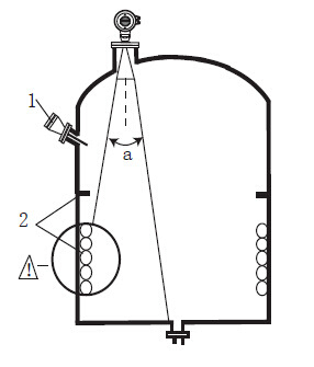 ● 在 信號(hào)波束內(nèi), 應(yīng)避免有如下安裝物(1):例如限位開(kāi)關(guān),溫度傳感器等?!?對(duì)稱(chēng)裝置(2),如真空環(huán),加熱線圈,擋板等等?!?如果罐內(nèi)有(1)(2)干涉物件,應(yīng)采用導(dǎo)波管進(jìn)行測(cè)量。 3.3安裝選擇● 天線尺寸:天線越大,波束角越小,干擾回波將越弱。● 天線調(diào)整:將天線調(diào)整到測(cè)量位置。(見(jiàn)樣本第8頁(yè))● 導(dǎo)波管:導(dǎo)波管安裝用來(lái)避免干擾回波。(見(jiàn)樣本第9頁(yè))