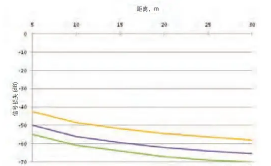 備注:天線增益表示定向天線輻射集中程度的參數(shù))不同頻率(26 10 6 GHZ)、同一天線和介電常數(shù)及距離增長的接受信號圖如下所示: