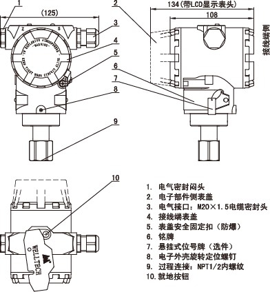 | 1 | M20×1.5(配電纜密封頭) | 表面噴塑鋁合金 | |